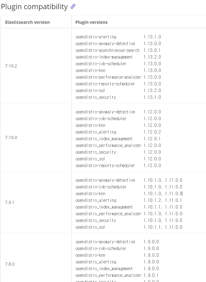 elasticsearch 버전별로 맞는 버전의 openditro를 설치해야한다.